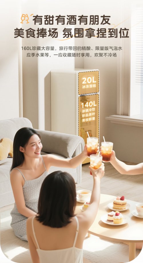如果你想要一台不占地、随手就能用的小冰箱,美的可爱多160这种定位就很对路:放在租房的小厨房角落、卧室门边、工位旁边都不突兀,主要解决的就是“饮料没地方冰、零食水果堆得乱、临时备菜总想找个独立空间”的日常烦恼。它的优势不在于花里胡哨,而是容量够用、分区好整理、拿取顺手——上层放饮品酸奶、下层放水果简餐,再留一块区域给冷冻小食,基本就把一个人的“日常小补给站”搭起来了。你如果是单身/情侣、小户型、宿舍、办公室备饮品这类场景,可爱多160属于那种买回来就能立刻提升生活秩序感的选择。