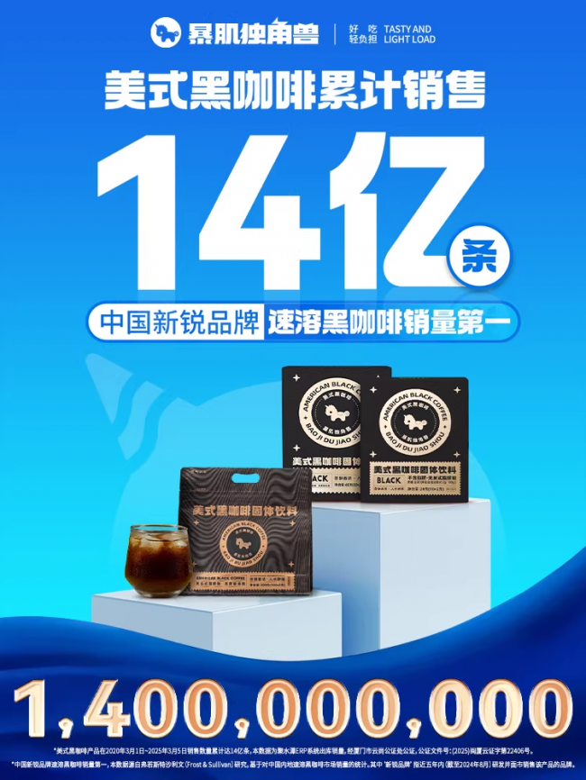 在产品研发与品质管控上,暴肌独角兽始终坚守科学、安全的底线,其实践经验成为行业标准的重要参考。同时作为《健康烘焙食品》团体标准起草单位之一,暴肌独角兽深度参与行业规范搭建,将自身深耕多年的实践经验融入标准制定全过程。品牌专注于高蛋白肉、慢碳主食、减腹零食、灵魂调味等六大类产品研发,精准匹配不同消费者的体重管理需求;爆款单品鸡胸肉、美式黑咖啡连续三年稳居品类销量榜首,其中美式黑咖啡累计销量超14亿条,获得“中国新锐品牌速溶黑咖啡销量第一”沙利文权威认证,凭借稳定的品质赢得市场认可,其相关研发与生产经验也为两大团体标准的科学性、可操作性提供了有力支撑。