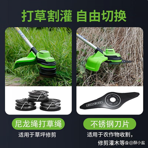 格力博打草机不仅是一台高效的割草设备,更是一款多功能的园艺工具。它可轻松切换至割灌模式,适用于多种作业场景。无论是修剪草坪、收割牧草,还是处理水稻、大麦等农作物,它都能胜任。设备配备了尼龙绳打草头和不锈钢刀片,用户可根据不同需求自由更换,满足从日常修剪到高强度作业的多样化需求。这种一机多用的设计,不仅提升了设备的实用性,也减少了用户购买多种工具的成本。无论你是家庭用户,还是农业从业者,这款打草机都能成为你得力的助手。